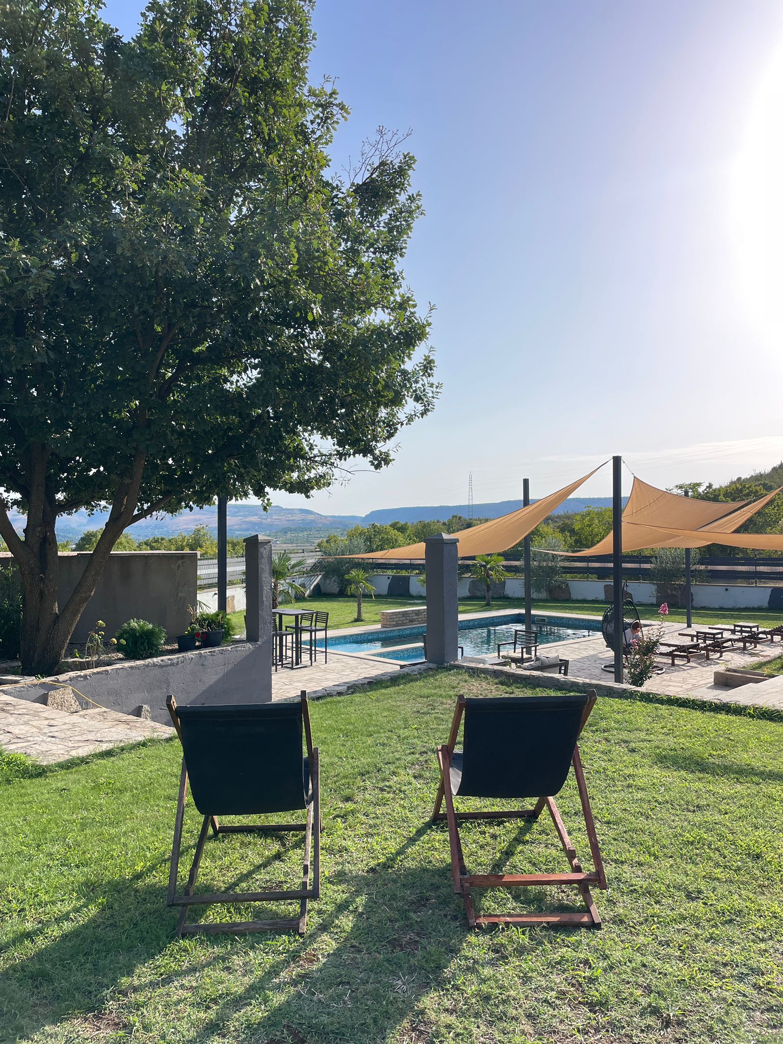 Vani u prelijepom prostranom dvorištu nalazi se bazen dimenzija 10×5, ležaljke, garniture za sjedenje, kupatilo, a gostima je na raspolaganju i roštilj.